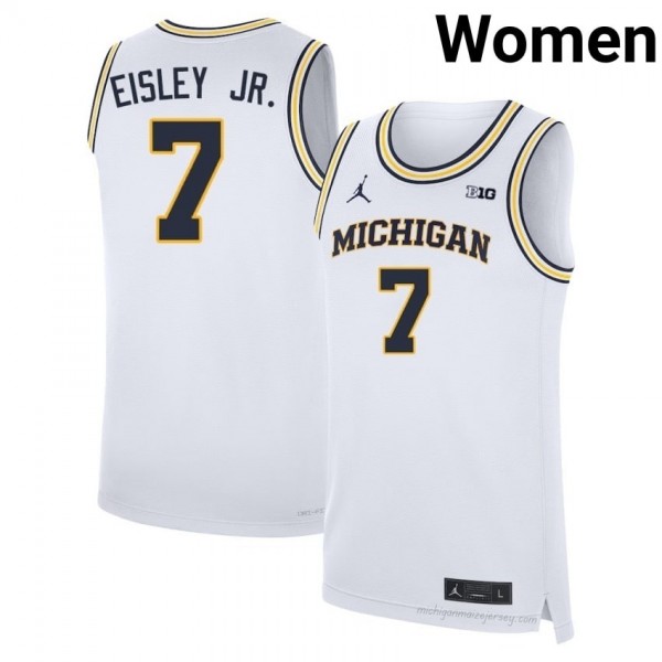 Howard Eisley Jr. #7 White Michigan Basketball Embroidery Jersey | Women's NCAA Player Replica