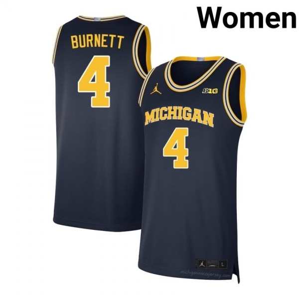 Michigan Wolverines Nimari Burnett #4 Women's Basketball Jersey | Navy Stitch College Gear