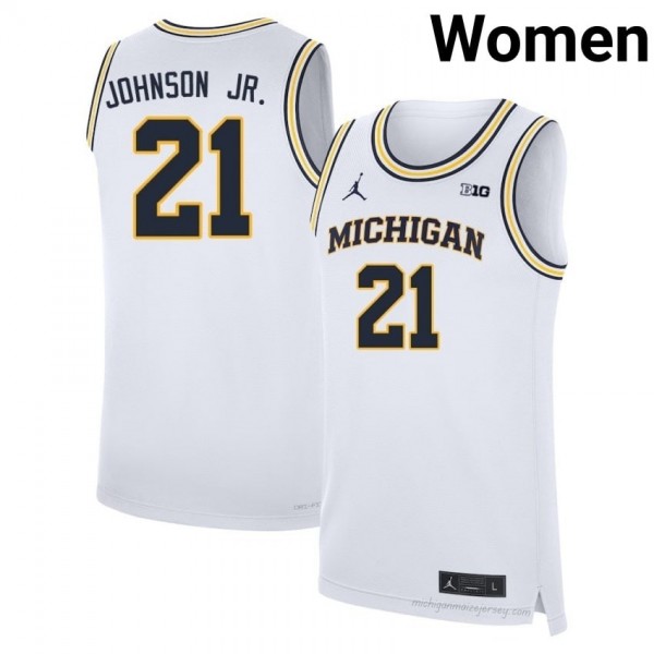 Morez Johnson Jr. #21 White Women's Basketball Jersey | Official Michigan Wolverines College Authentic Edition 146aK1TK