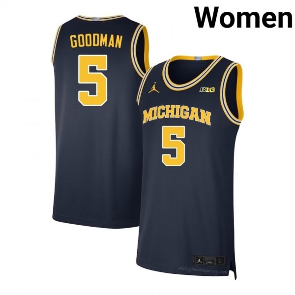 Navy Michigan Oscar Goodman #5 Basketball Stitch Jersey | Women's NCAA Hoops Apparel