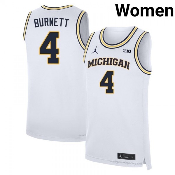 Nimari Burnett #4 White Michigan Basketball Embroidery Jersey | Women's NCAA Player Replica