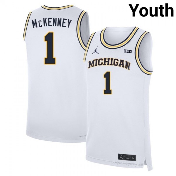 Trey McKenney #1 White Youth Basketball Jersey | Official Michigan Wolverines College Authentic Edition